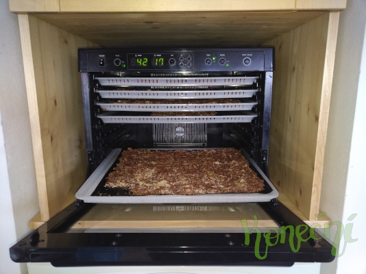 Jakožto vitariáni si s manželkou obzvlášť užíváme elektronickou regulaci teploty umožňující sušit při teplotě do 42°C. Je pro nás důležité ve stravě uchovat enzymy, které se vyšší teplotou ničí. Zjistili jsme, že je opravdu rozdíl mezi semínkovými sušenkami ze sušičky bez vhodné regulace teploty a sušičkou s regulací. Dále nás zaujalo, že i když sušíme věci s česnekem, tak při teplotě sušení do 42°C není čerstvý česnek výrazně cítit. Cena je v porovnání se startovními sušičkami s RAW teplotou do 42°C (kolem 4,5 tis. Kč vyšší. Nevýhodou startovní sušičky je její kruhový tvar s otvorem uprostřed). Obdélníkový tvar umožňuje rychle roztírat těsto semínkových chlebíků a sušenek. Dále umožňuje sušit i kruhové placky, které jsme v naší původní sušičce se střední otvorem dělat nemohli. Celkově jsme zatím se sušičkou velmi spokojeni, a uvidíme jak dlouho bude fungovat. Sušička ABC v cenové relaci kolem dvou tisíc Kč totiž funguje už téměř desítku let, a kdyby měla elektronickou regulaci teploty, tak neměníme. |